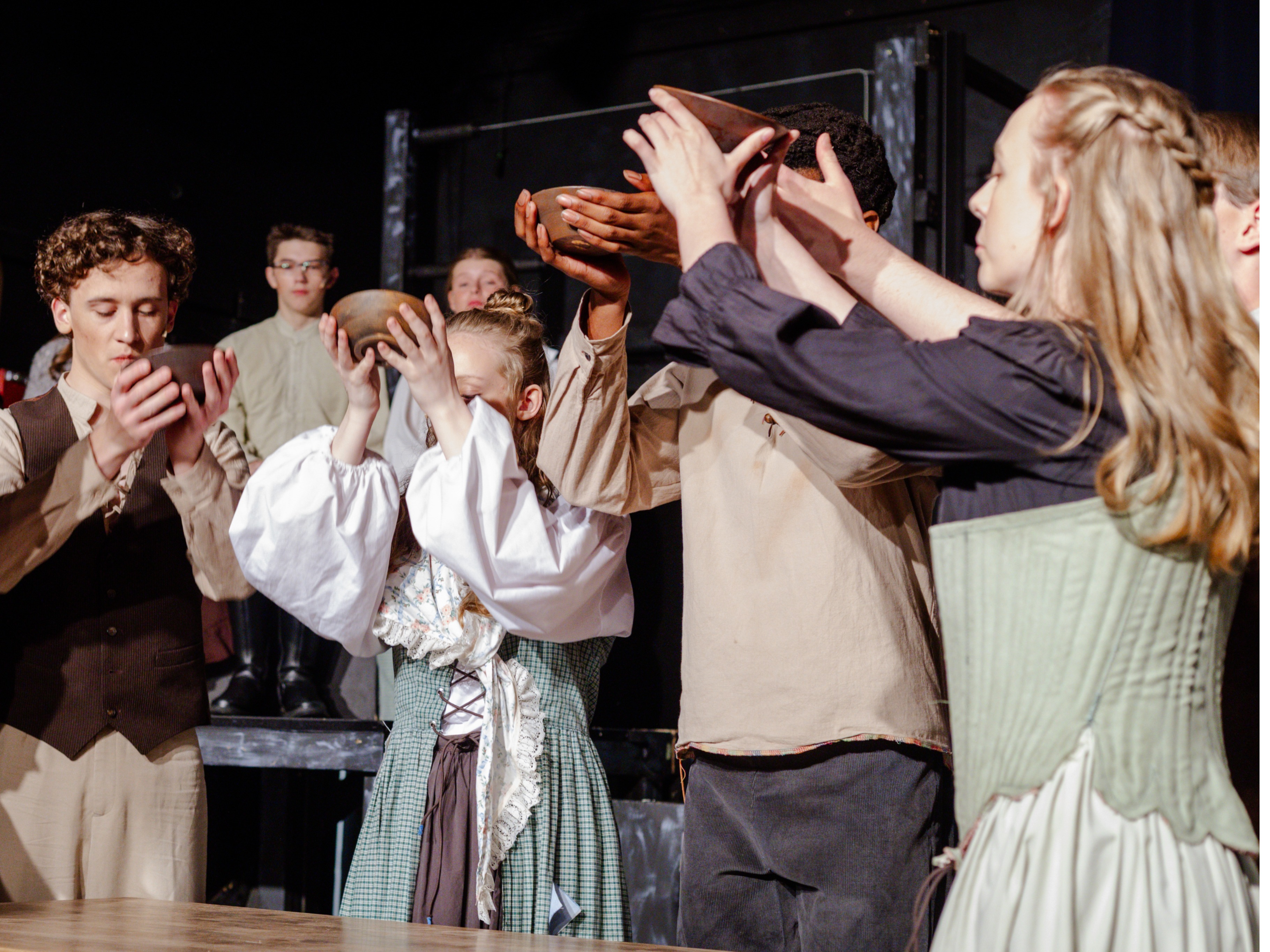 Our class performs a full-length musical drama. We will start work immediately on the production. This includes stage direction, character building, projection, choreography, and singing, as all of our productions are musicals.